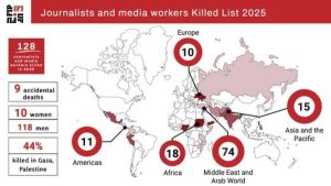 International Federation of Journalists’ (IFJ) has stated that one hundred and twenty-eight journalists and media workers, including 10 women, were killed in 2025. Since 1990 and the launch of its annual Killed List, the IFJ has recorded 3,173 deaths worldwide, Read More